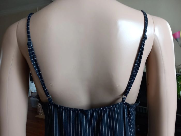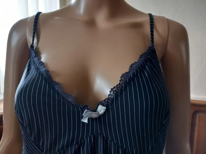 Jolie nuisette Taille : 38 Bretelles réglables Coloris : Sur fond noir, rayures blanches Dentelle sur le décolleté et les aisselles Etat impeccable #carlisle66lingerie