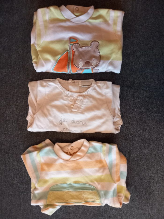 Joli lot de 3 grenouillères Taille : Naissance / jusqu'à 1 mois (50 cms) 100% Coton Plusieurs marques dont 3 Pommes Etat impeccable #carlisle66garçon1mois