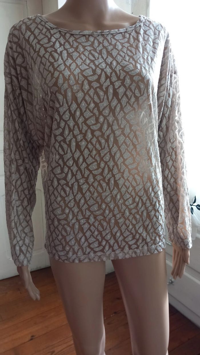 Joli t-shirt manches longues chauve-souris Taille : 38 Composition : Viscose, Polyester et Elasthanne Coloris : Beige et Crème Marque : G-maxx Légère transparence État impeccable #carlisle66femmetaille38