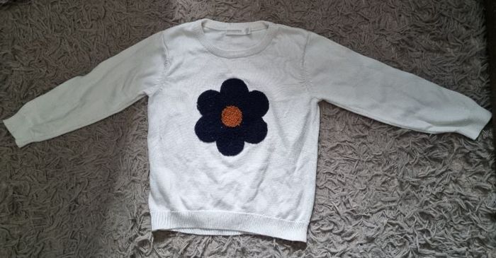 Pull blanc avec fleur, taille 4ans marque Orchestra,légère tache voir dernière photo.