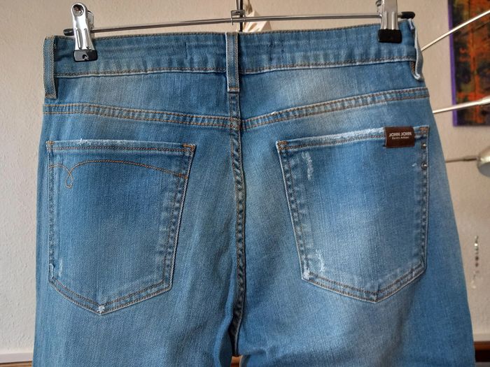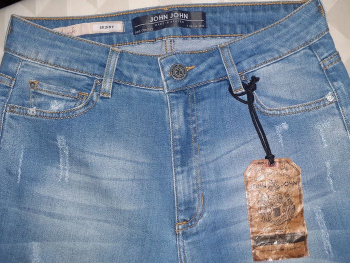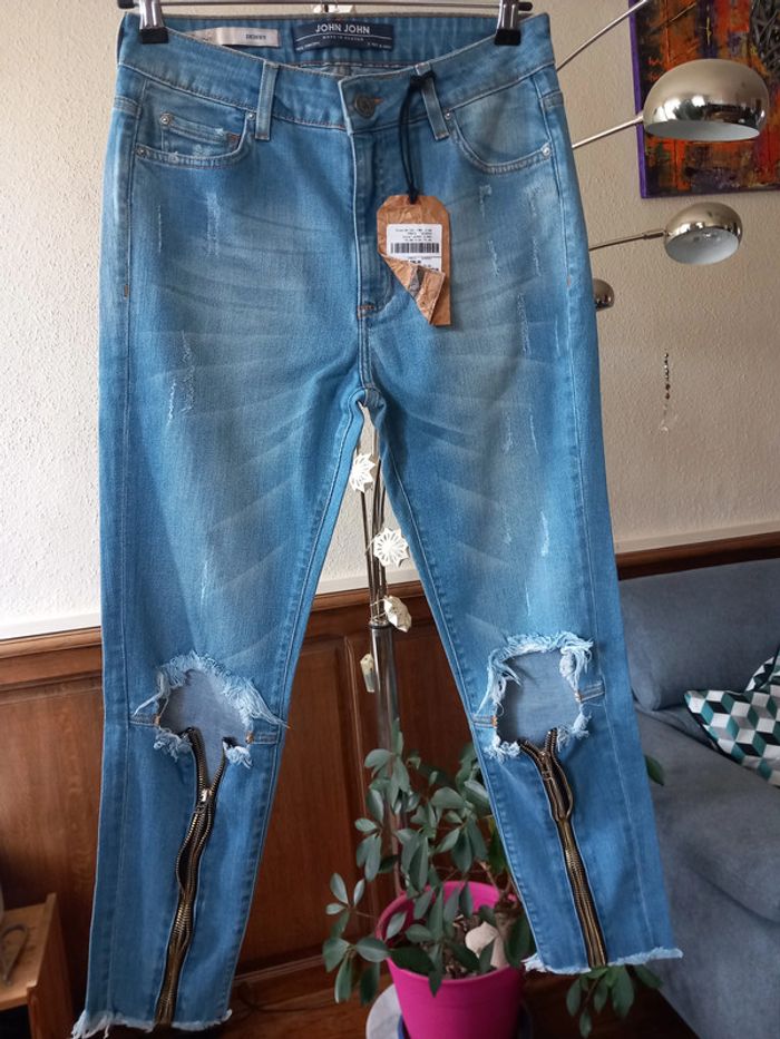 Très beau jean, coupe skinny Troué et zippé d'origine Marque : John John (marque Brésilienne) Taille : L/40 Composition : 99% Coton, 1% Élasthanne Neuf avec étiquette #carlisle66femmetaille40