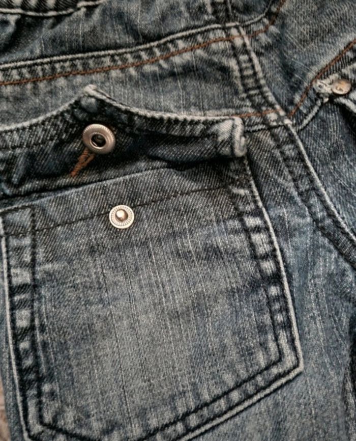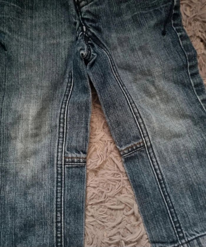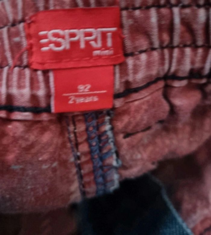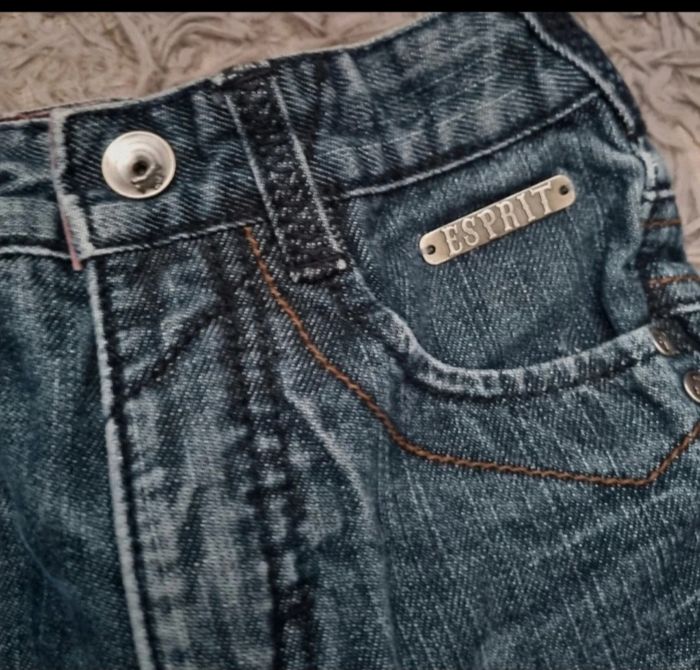 Jean gris,marque Esprit taille 2ans 92cm, réglable à l'intérieur, fermeture zippée avec faux bouton,poches arrière à pressions, manque un bouton intérieur et légèrement usé aux genoux voir photos.