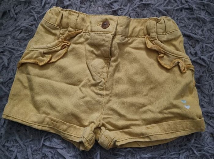 short jaune réglable à l'intérieur, fausse poches,taille 9mois marque Orchestra.