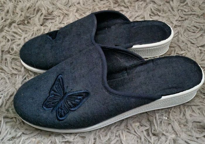 Chaussons marine avec papillons brodée, pointure 39,hauteur talons 4,5cm,neuf juste éssayer.