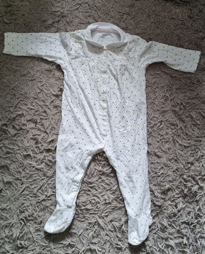 Grenouillère blanc à motifs,taille 12mois marque Obaïbi.