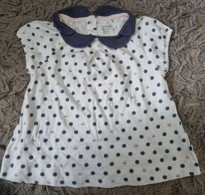 T-shirt à pois,taille 12mois marque Obaïbi, pressions dans le dos.