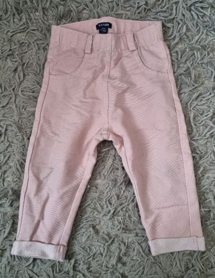 Pantalon legging style jeans rose clair, marque Kiabi, (12mois 73-76cm 10kg), 70%coton, 27%polyester, 3%élasthanne,mini tache voir dernière photo.