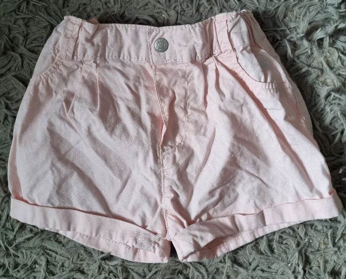 Short rose à pois blanc,taille 12mois marque Obaïbi, réglable à l'intérieur.