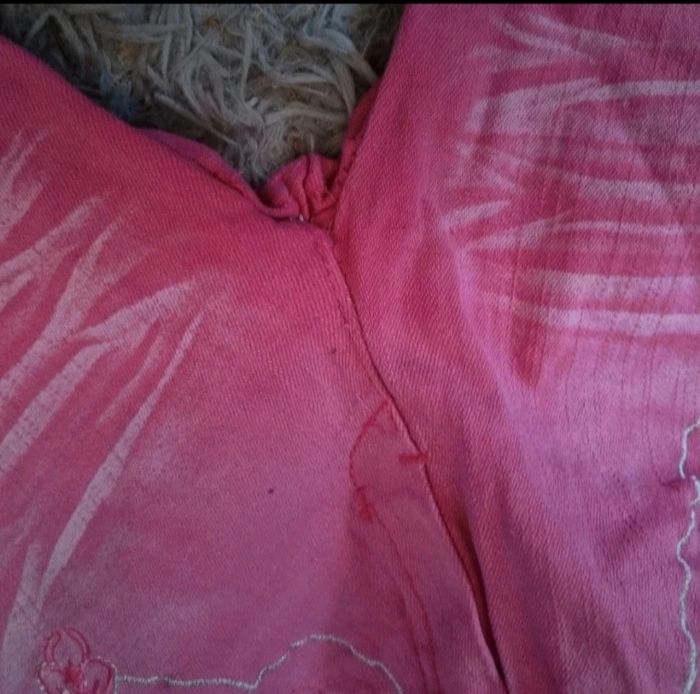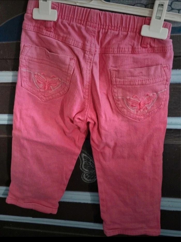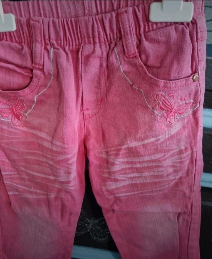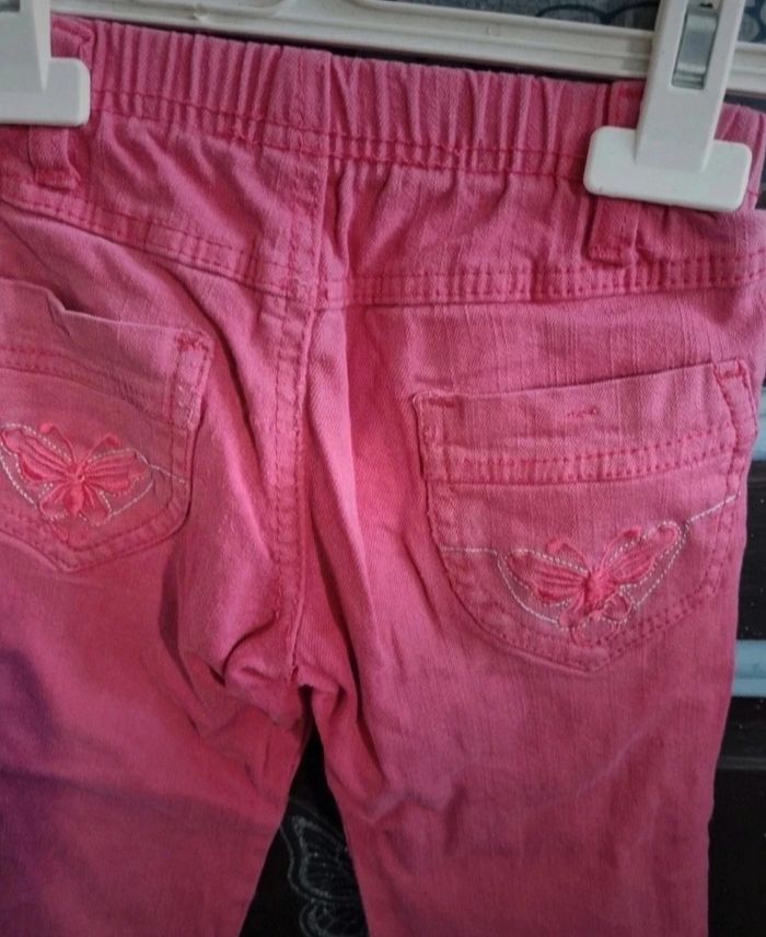 Pantacourt rose en jean effet délavé avec papillons brodée,taille 8ans,élastique à la taille, 85%coton 15%polyester.