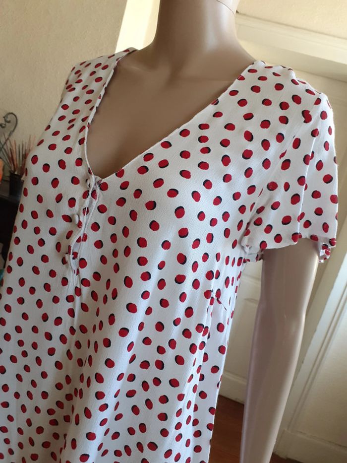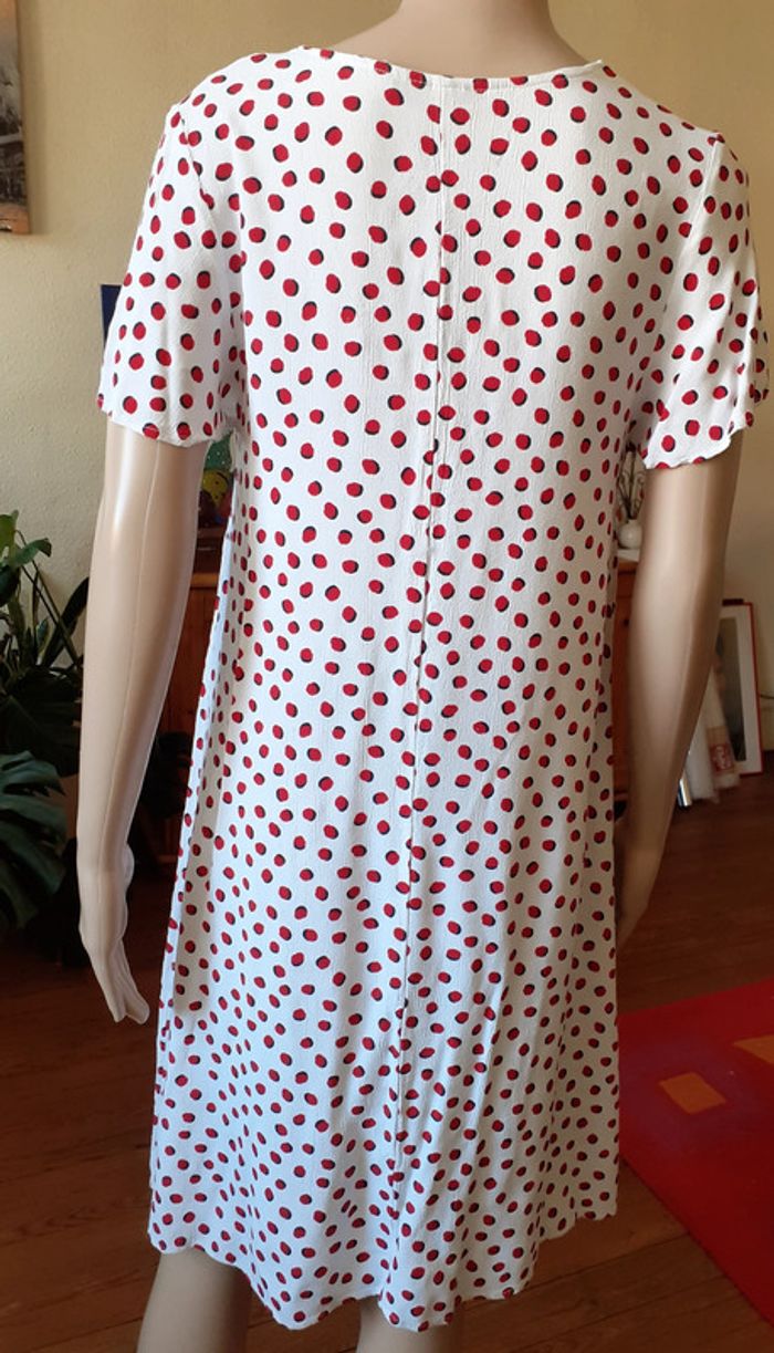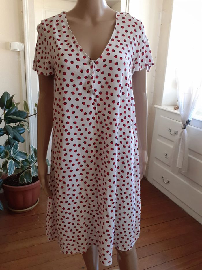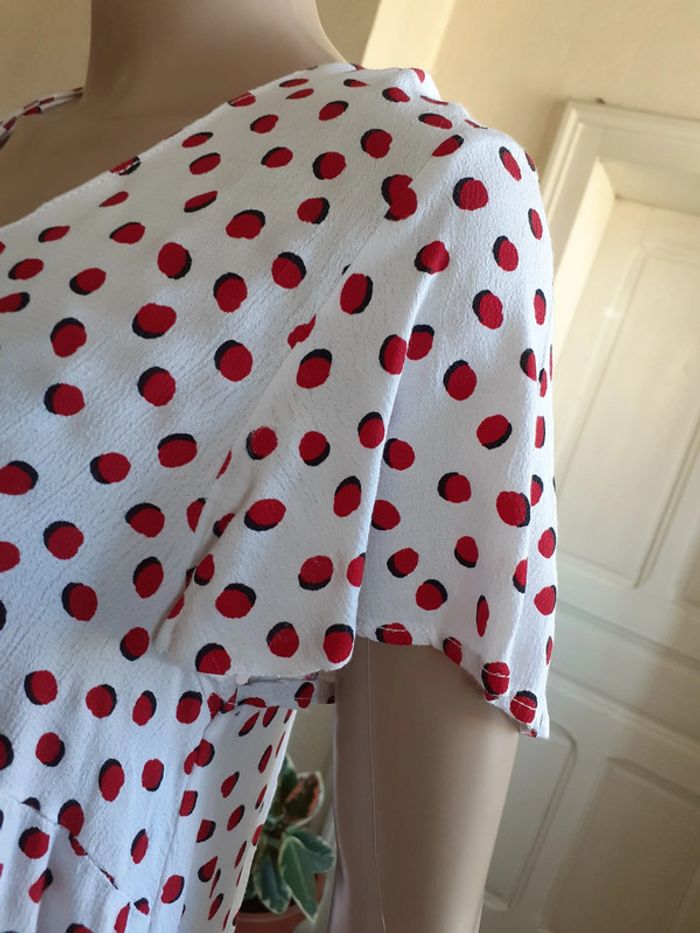 Jolie robe à l'encolure en V Coupe ample Manches papillon Possibilité de la porter ceinturée Coloris : Blanc et Rouge Etat impeccable #carlisle66femmetaille36
