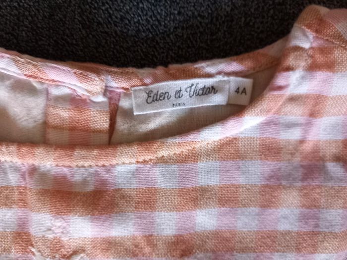 Jolie tunique Taille : 4 ans 100% Coton Fermeture par petits boutons dans le dos Coloris : Abricot et Blanc Marque : Eden & Victor Très bon état #carlisle66fille4ans