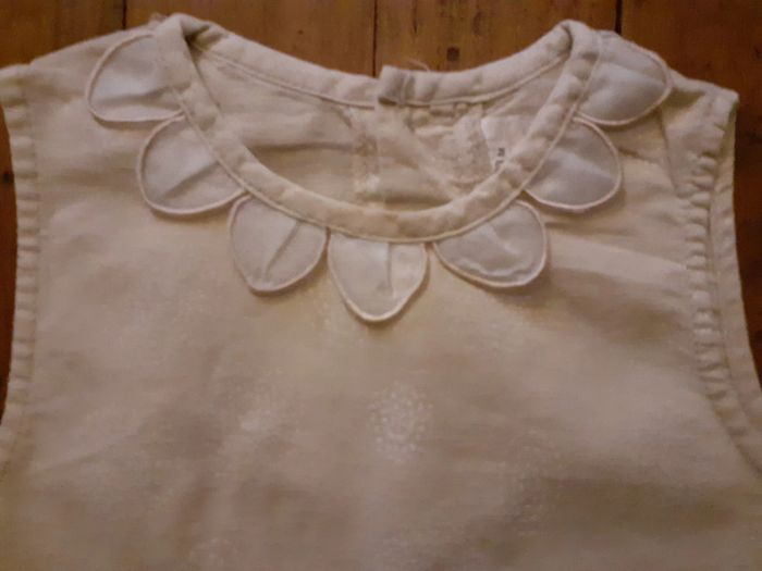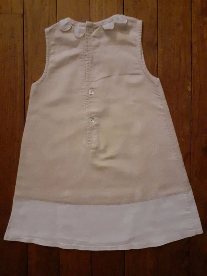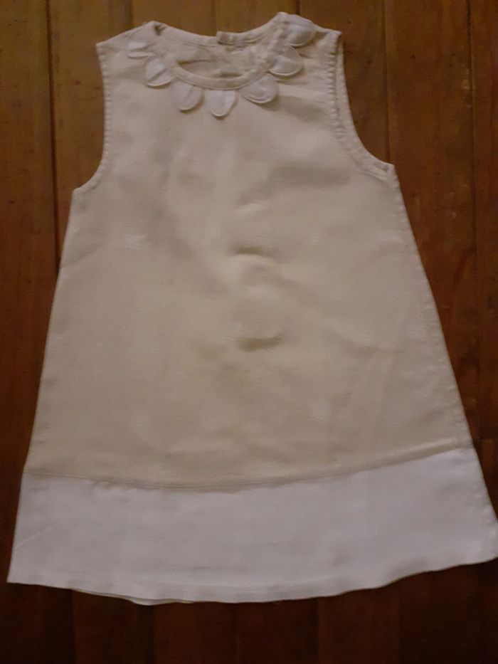 Très jolie robe Composition : 53% Lin, 47% Coton Fermeture par petits boutons dans le dos Coloris : Beige et Blanc Taille : 23 mois Etat impeccable #carlisle66fille24mois
