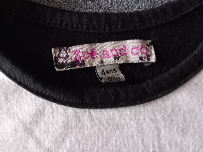 Joli t-shirt Marque : Zoé & Co Taille : 4 ans Coloris : Noir et blanc Dos légèrement plus long, arrondi Polyester et Viscose Très bon état #carlisle66fille4ans