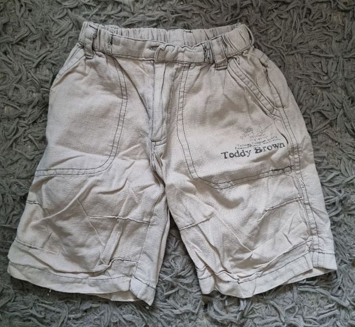 Bermuda crème taille 26mois marque Teddy Brown, élastique à la taille, fermeture zippée avec bouton.