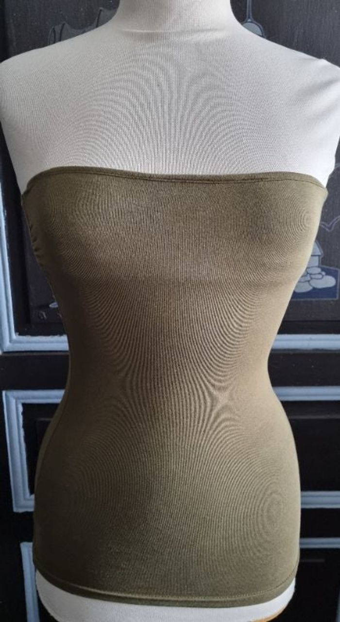 Top épaules dénudée kaki, taille XS marque H&M,élastique à la poitrine, longueur 41cm, largeur 32cm, largeur poitrine 32cm jusqu'à 38cm (mesures pris à plat).