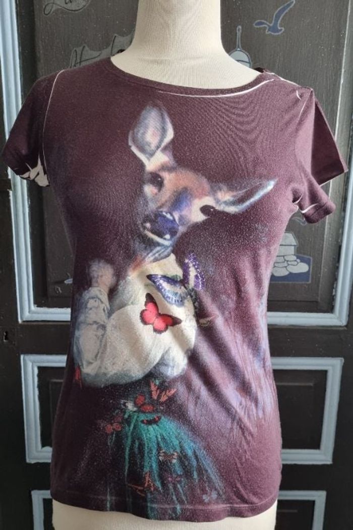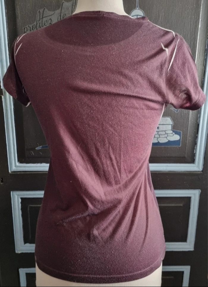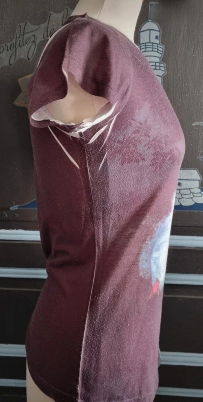 T-shirt style vintage violet, taille 34-36,longueur 62cm, largeur 39cm, longueur épaule à aisselle 20cm, largeur aisselle à aisselle 42cm.