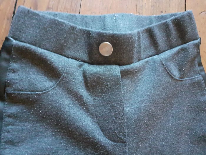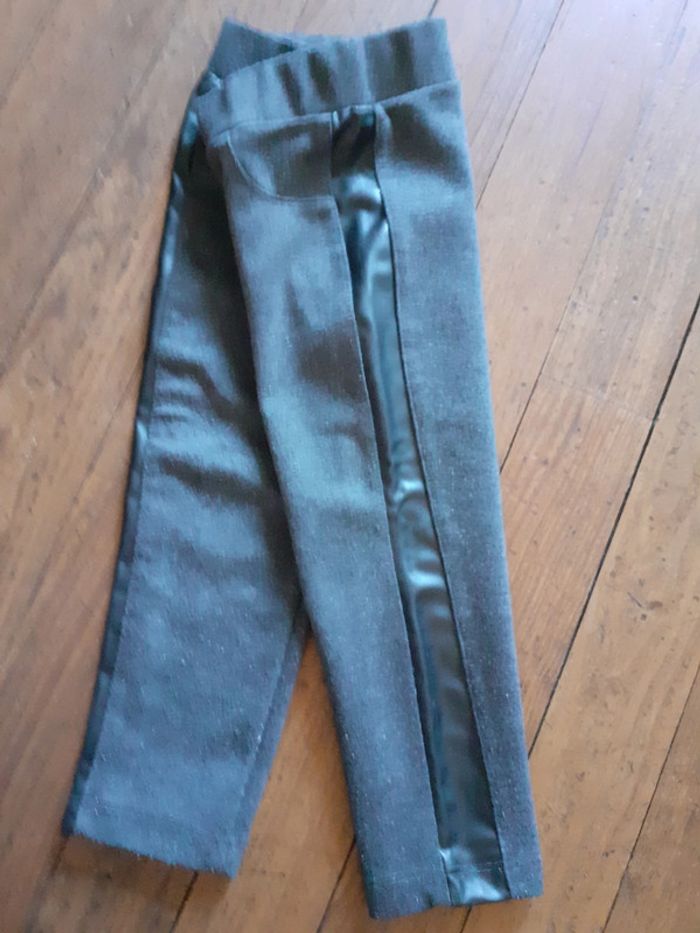 Joli jegging Fermeture par bouton pression Taille : 3 ans Composition : 71% Polyester, 25% Viscose, 4% Elasthanne Marque : Kiabi Coloris : Gris, bande noire en simili le long de la jambe Très bon état #carlisle66fille3ans