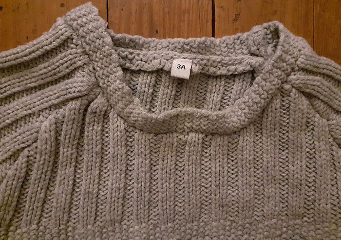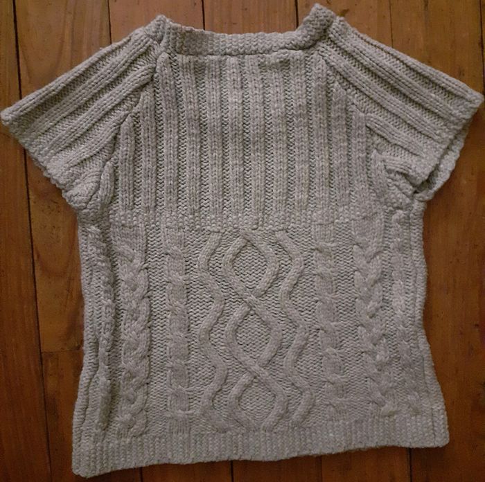 Joli pull à manches courtes en côtes et torsades Taille : 3 ans Coloris : Gris souris 95% Acrylique, 5% Polyester Etat impeccable #carlisle66fille3ans