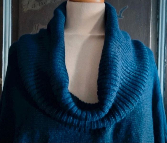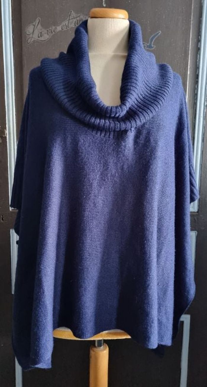 Grand poncho taille S, marque Gémo, très chaud et large ,100%acrylique ,bleu marin.