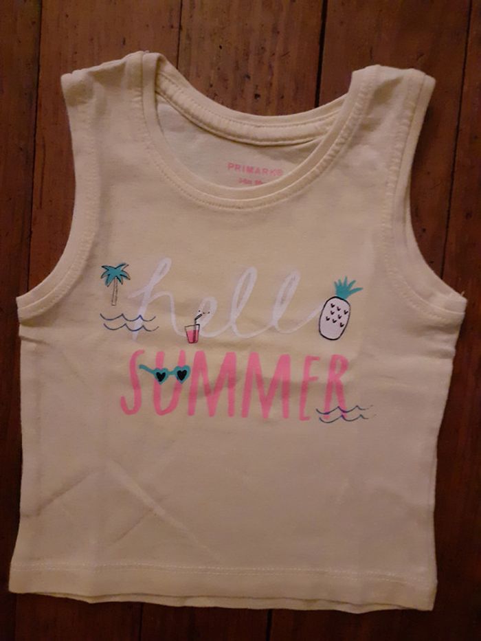 Débardeur Marque : Primark Taille : 6 mois 100% Coton Coloris : Jaune paille et motif sur le devant État impeccable #carlisle66fille6mois
