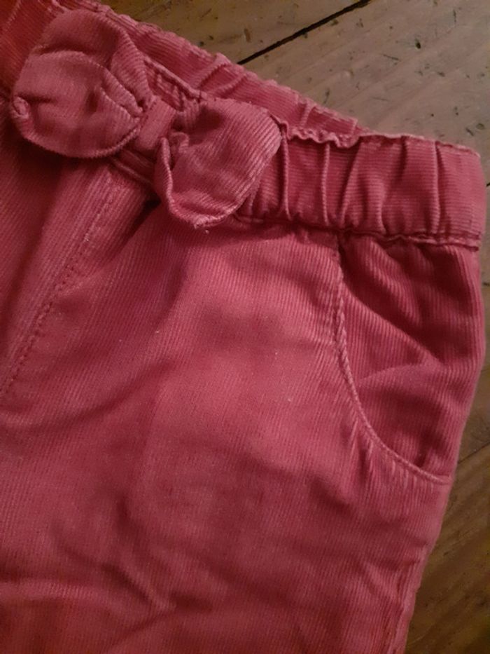 Joli pantalon, aspect velours ras Petit nœud à l'avant Taille : 6 mois Coloris : Rose Framboise 100% Coton Marque : Du pareil au même Deux poches avant et arrière Taille élastiquée Etat impeccable #carlisle66fille6mois