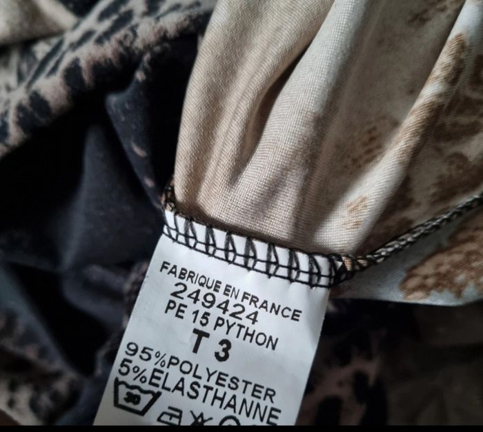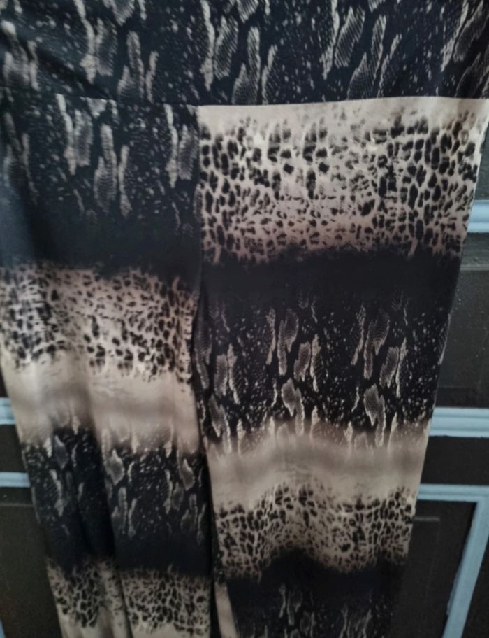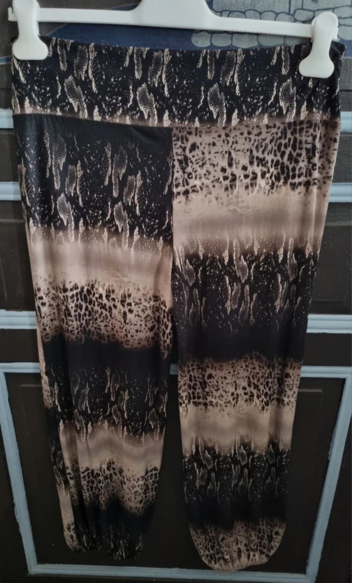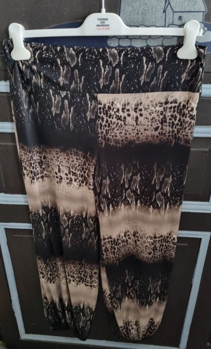 Pantalon léger imprimé léopard ou serpent 😅,marque python taille 3,élastique aux chevilles,longueur 92cm, largeur de la taille 45cm jusqu'à 48cm, largeur cuisse 33cm, largeur cheville 16cm jusqu'à 24cm.