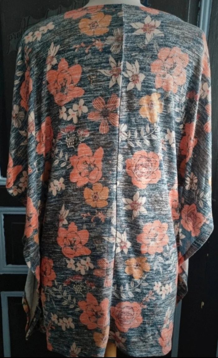 Poncho gris à motifs fleurs taille unique - photo numéro 3