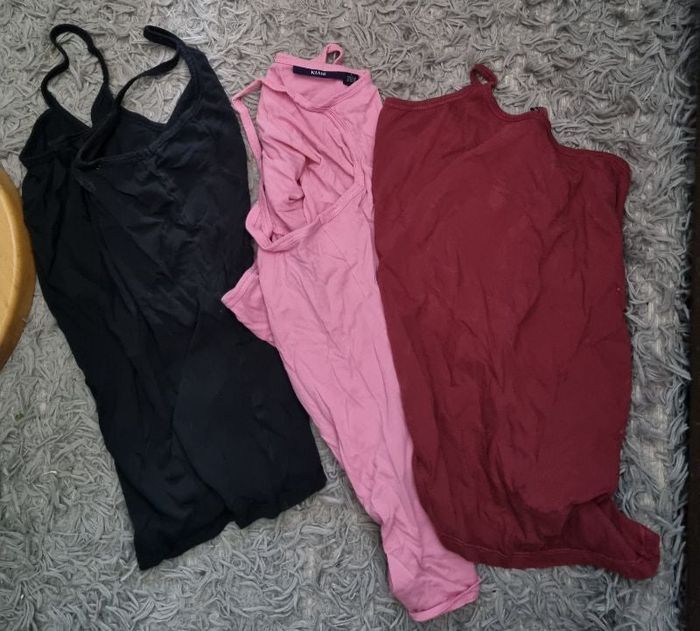 Lot 3 Débardeur à bretelles noir ,bordeaux et rose,taille L marque Kiabi,100%coton, longueur 47cm, largeur 44cm.