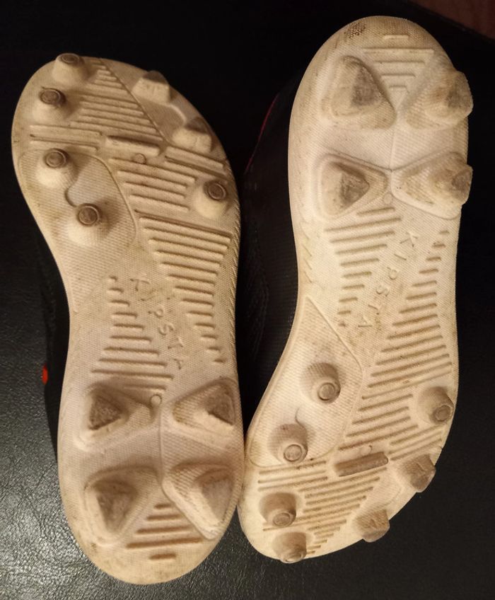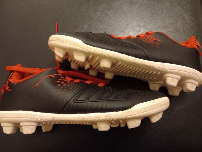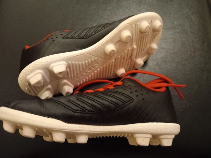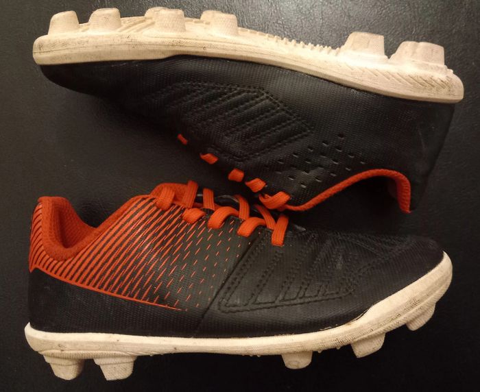Jolies chaussures de football Taille : 27 Coloris : Noir et Orange Marque : Decathlon Fermeture par laçage Très bon état #carlisle66enfantchaussures