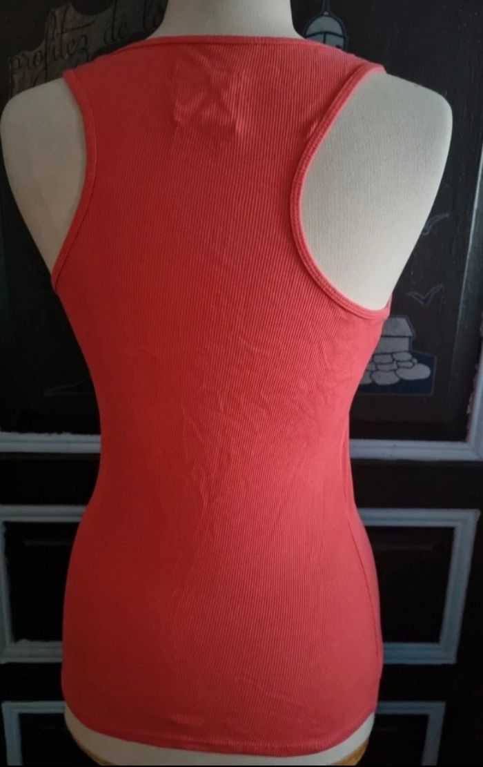 Débardeur rose taille S marque Cache-cache,longueur 65cm, largeur 32cm, longueur épaule à aisselle 23cm, largeur épaule à épaule 25cm.