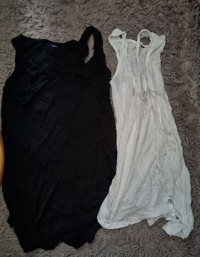 Lot 2 débardeur uni (noir et blanc),taille S marque Kiabi, style fendue sur les côtés en bas,plus long à l'arrière.