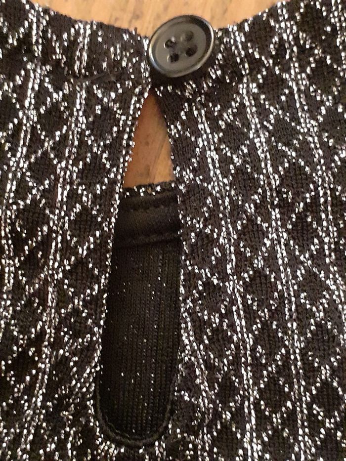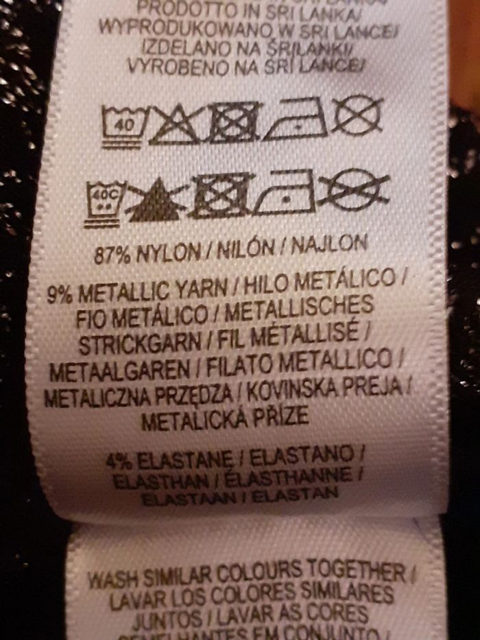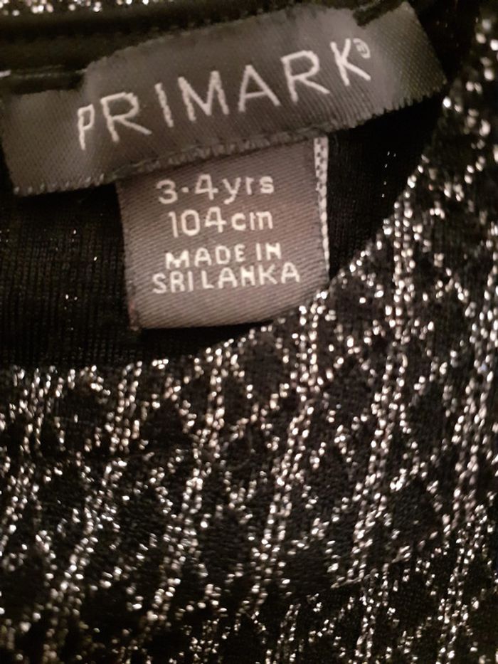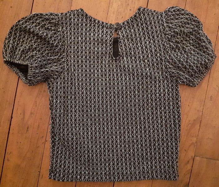 Très joli t-shirt à manches courtes Taille : 4 ans Fermeture "goutte d'eau" dans le dos Coloris : Noir métallisé Marque : Primark Composition : 87% Nylon, 9% Fil métallisé, 4% Elasthanne Etat impeccable #carlisle66fille4ans