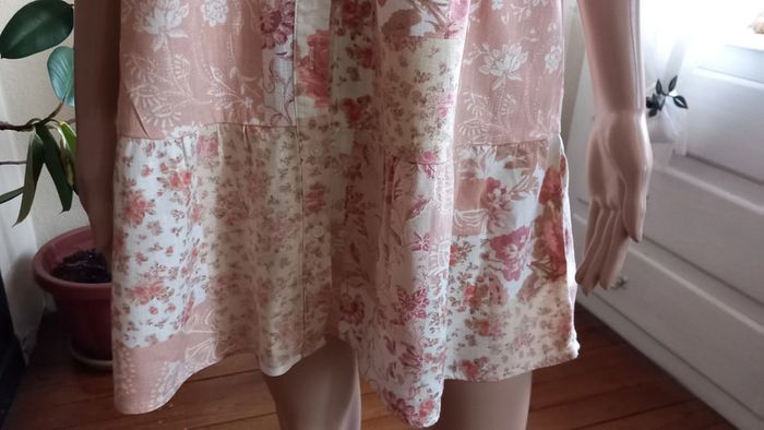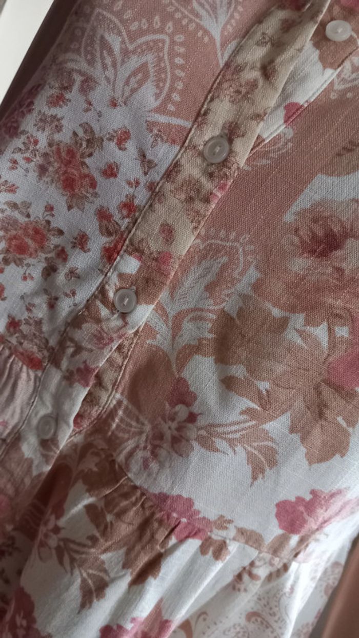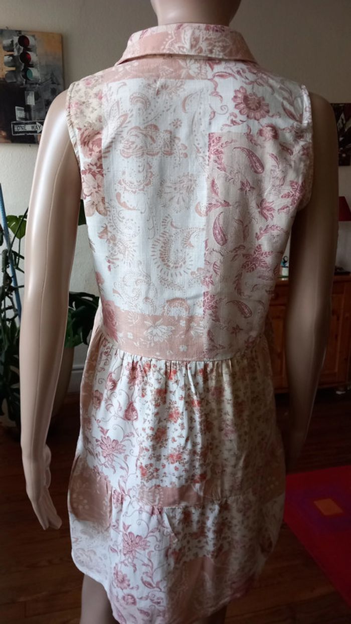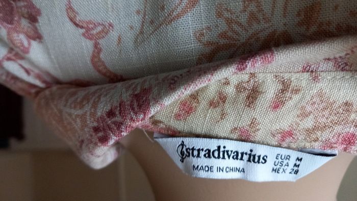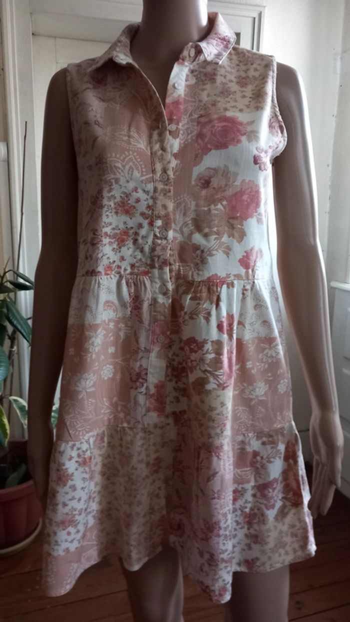 Très jolie robe, col chemise A boutonner sur une partie de la longueur avant Taille : 38 Coloris : Blanc et rose Marque : Stradivarius Etat impeccable #carlisle66femmetaille38
