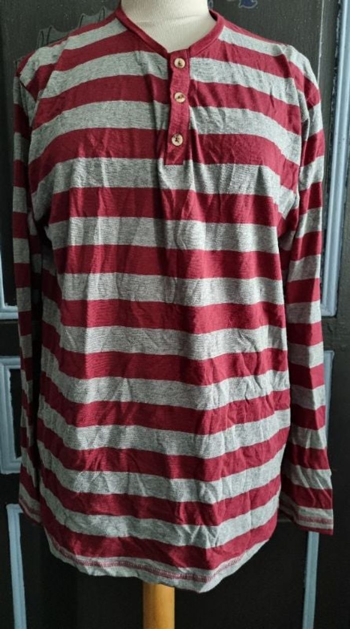 T-shirt manches longues à rayures taille L,longueur 74cm, largeur 57cm,longueur épaule à aisselle 22cm,largeur aisselle à aisselle 55cm, longueur manche 49cm.