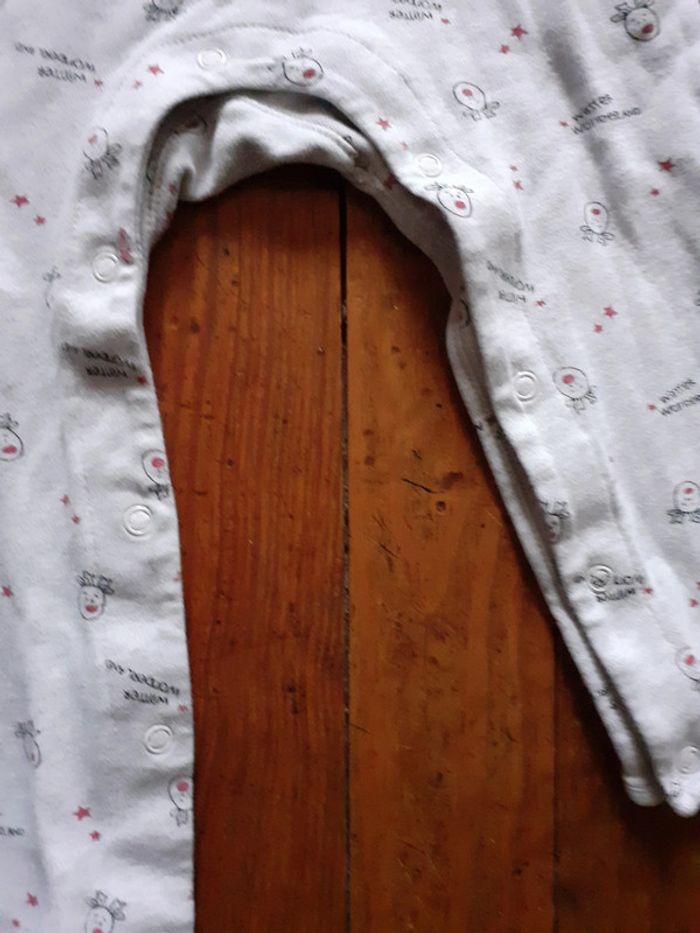 Joli pyjama et son bonnet Taille : 98/104 (3/4 ans) Coloris : Gris pale à motifs noirs et rouges Fermeture par pression à l’entrejambe 100% Coton Marque : PocoPiano Etat impeccable #carlisle66fille3ans