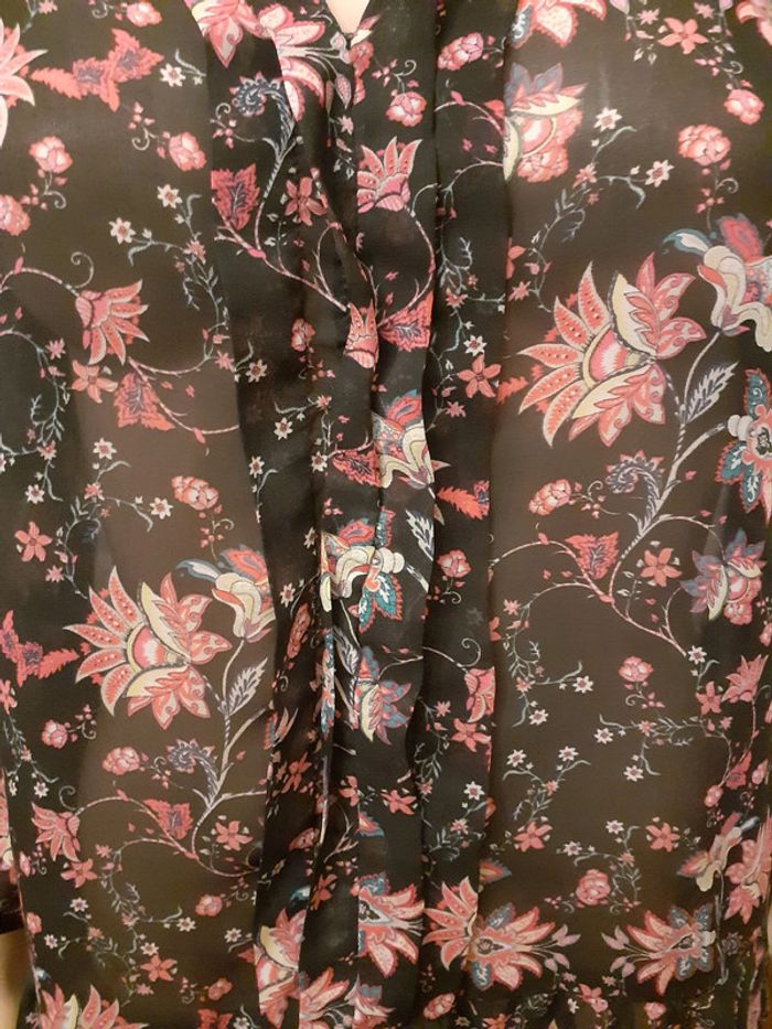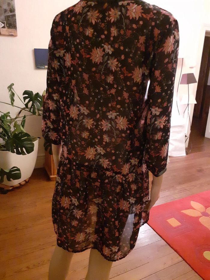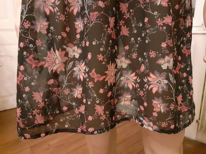 Très jolie robe tunique et sa doublure Coloris de la robe : Fleuri sur fond noir Coloris de la doublure : Noir Taille : 38 Etat impeccable #carlisle66femmetaille38