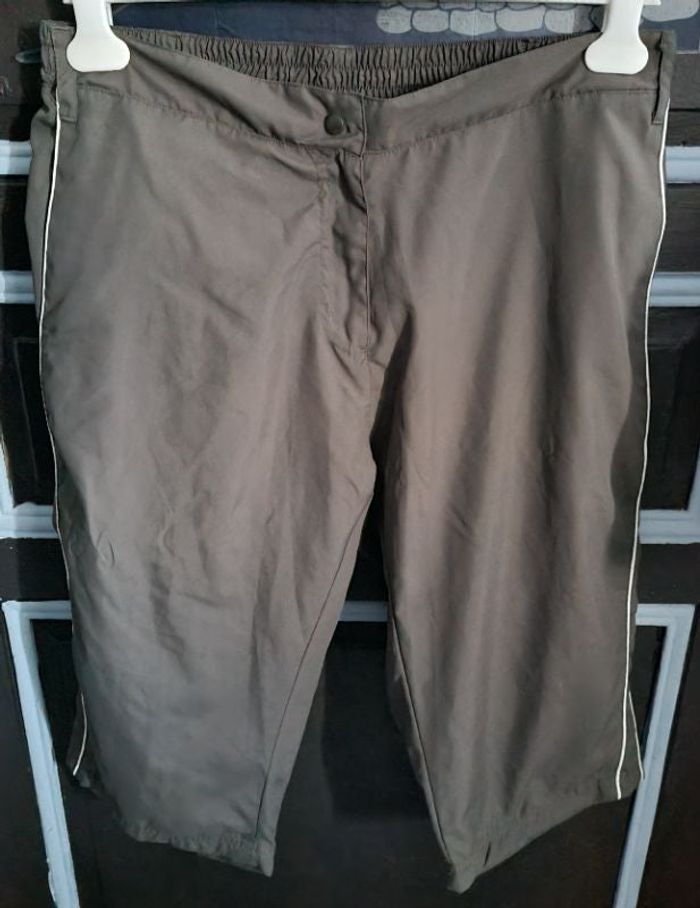 Pantacourt jogging taille 46/48,marque Crivit se ferme à zip et pression + un bouton,élastique à la taille,longueur 69cm, largeur de la taille 44cm jusqu'à 48cm, largeur cuisse 31cm, largeur cheville 20cm.