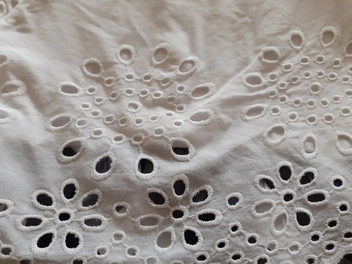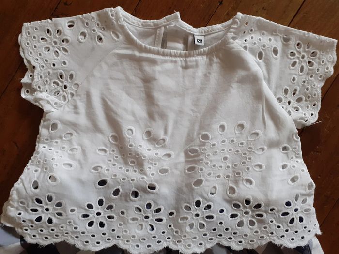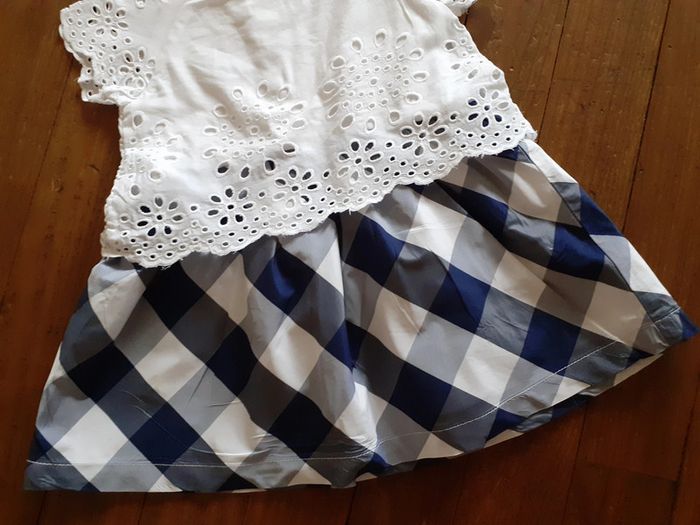 Très jolie robe à broderie Taille : 12 mois Fermeture par 4 petits boutons dans le dos Composition : Haut : 100% Coton Bas : 100% Polyester Doublure jupon : 60% Coton, 40% Polyester Coloris : Blanc, Marine et 2 tons de Gris Etat impeccable #carlisle66fille12mois