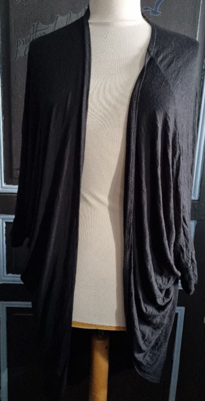 Long gilet léger taille 46/48 se porte très bien très peut servie marque Cotton candy, longueur 130 cm et largeur 55cm ,manches 3/4.