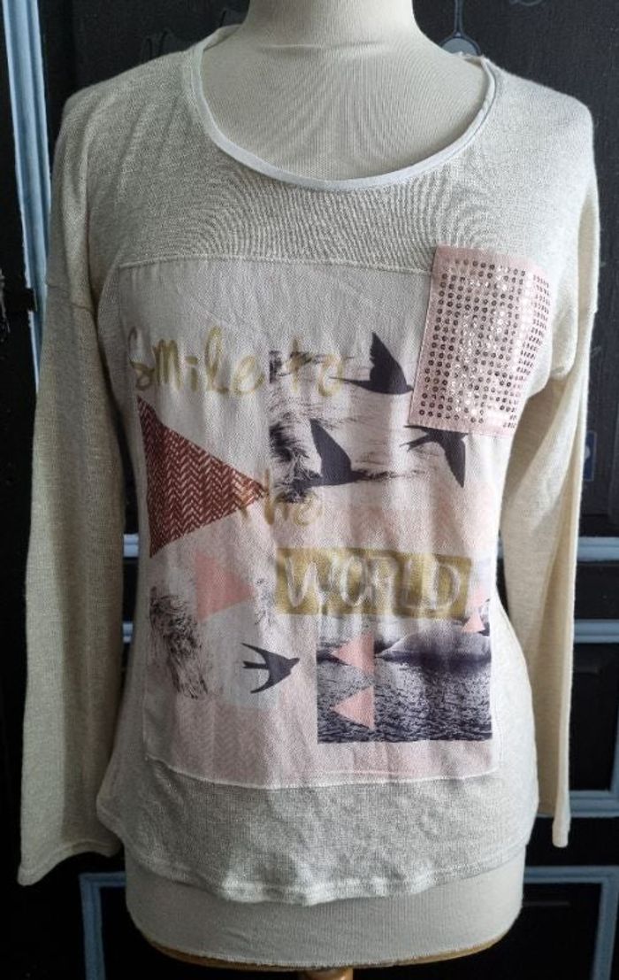 Pull crème pailleté taille 42,longueur 60cm, largeur 45cm, longueur épaule à aisselle 17cm, longueur manche 48cm,largeur aisselle à aisselle 57cm.