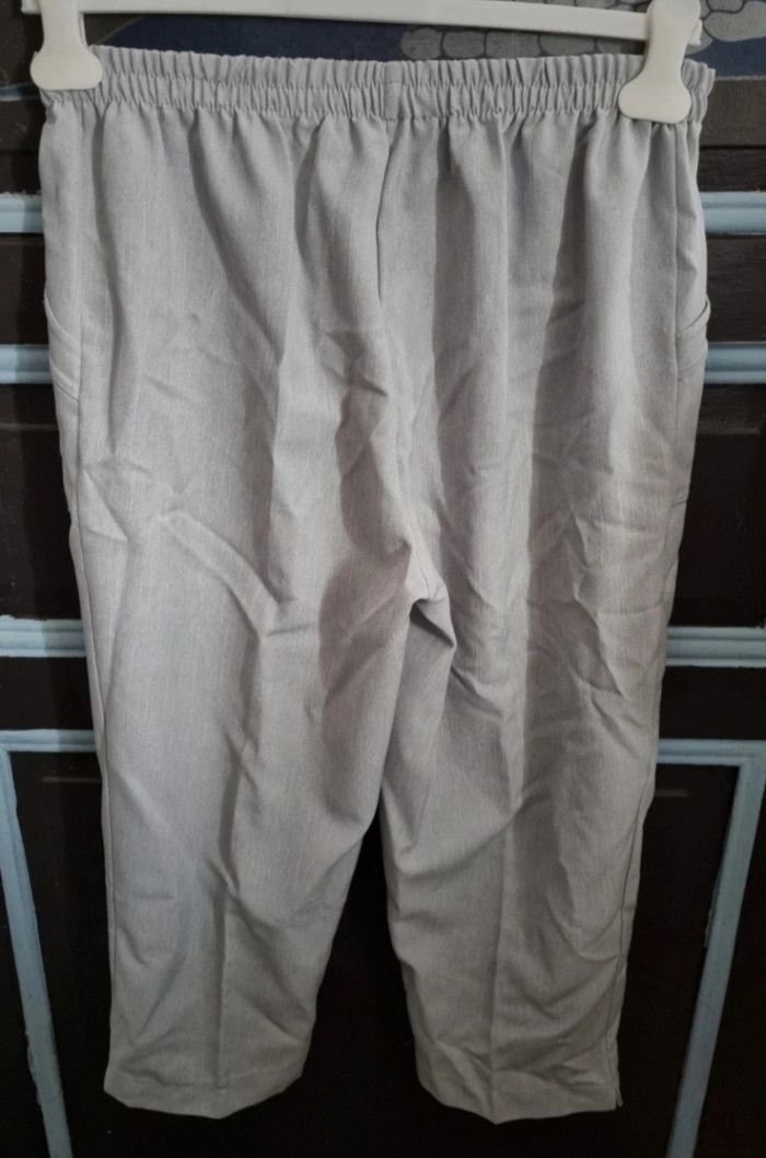 Pantacourt gris clair taille 3,longueur 81cm, largeur de la taille 33cm jusqu'à 46cm, largeur cuisse 28cm, largeur cheville 19cm.