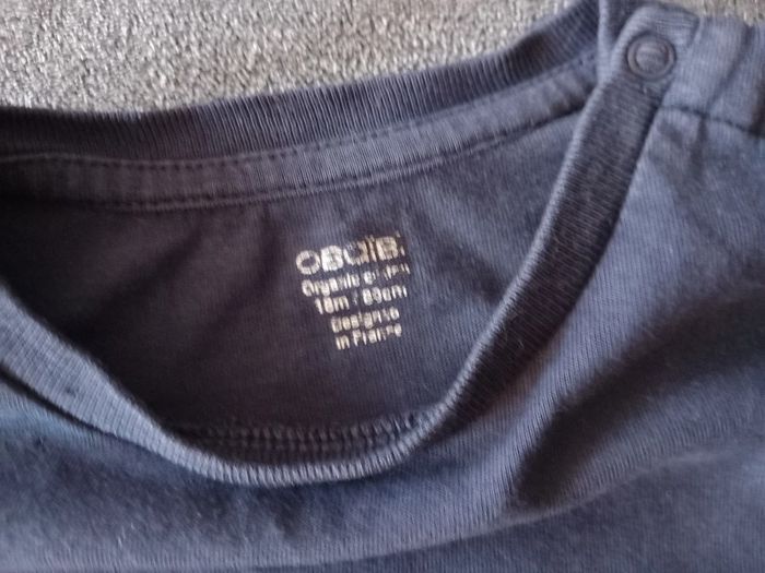 Joli t-shirt à manches longues Coloris : Bleu marine, motif jaune soleil Marque : Obaïbi Taille : 18 mois Etat impeccable #carlisle66garçon18mois
