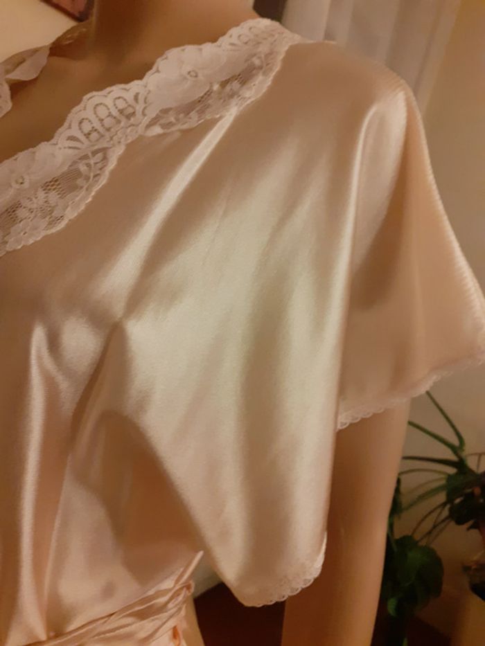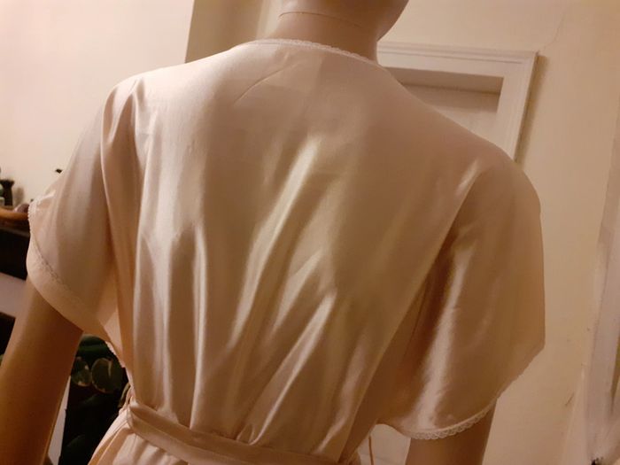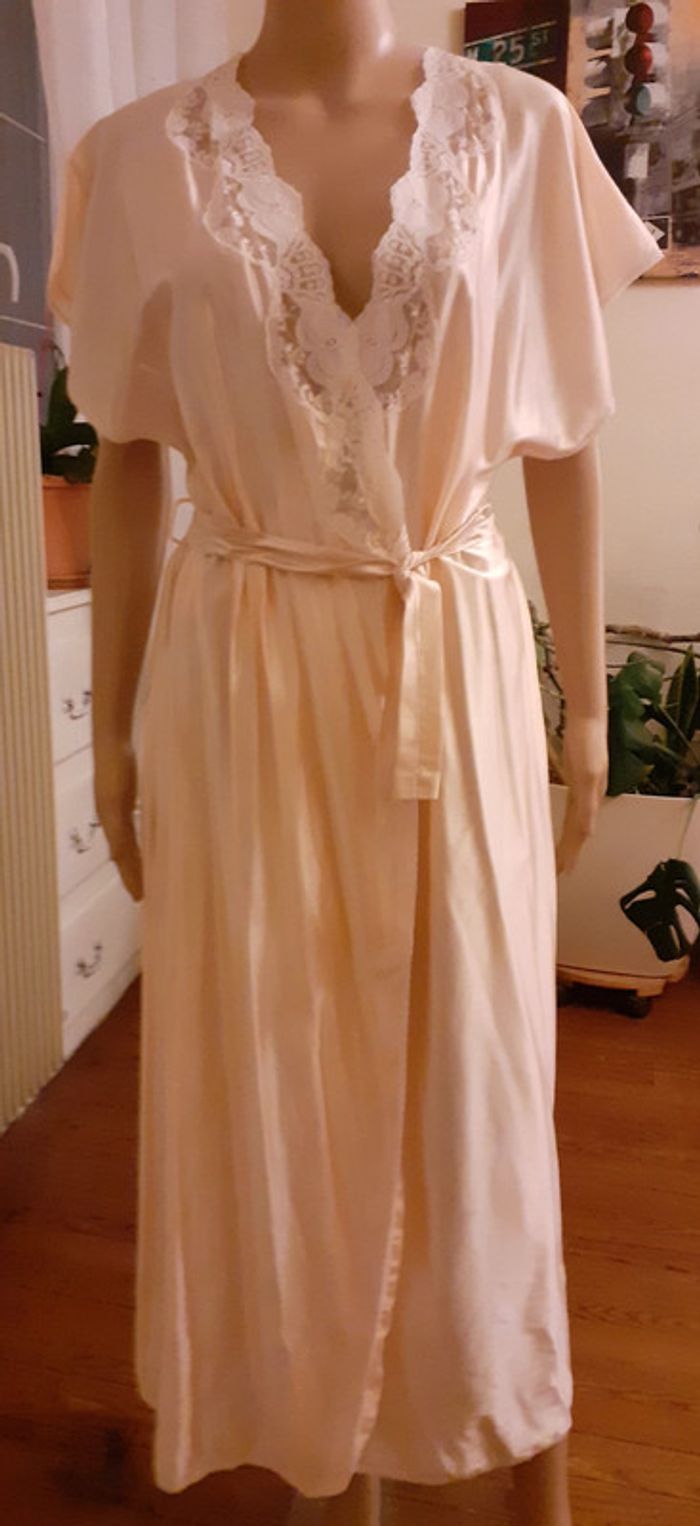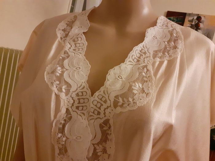 Magnifique déshabillé au décolleté en V en broderie Marque : Arnel Taille : 40 Composition : 85% soie artificielle (Triacétate), 15% Polyamide Coloris : Rose pâle Cordon de nouage intérieur pour un ajustement parfait Etat impeccable #carlisle66femmetaille40