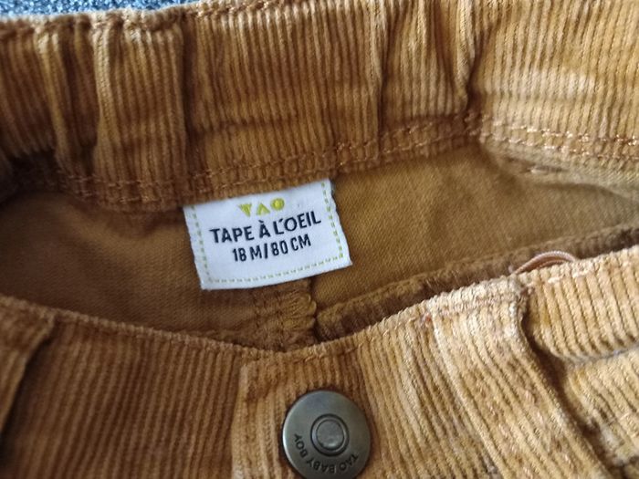 Joli pantalon, aspect velours ras Taille : 18 mois Coloris : Marron Orangé Marque : Tape à l'œil Petits boutons de serrage à la taille Etat impeccable #carlisle66garçon18mois