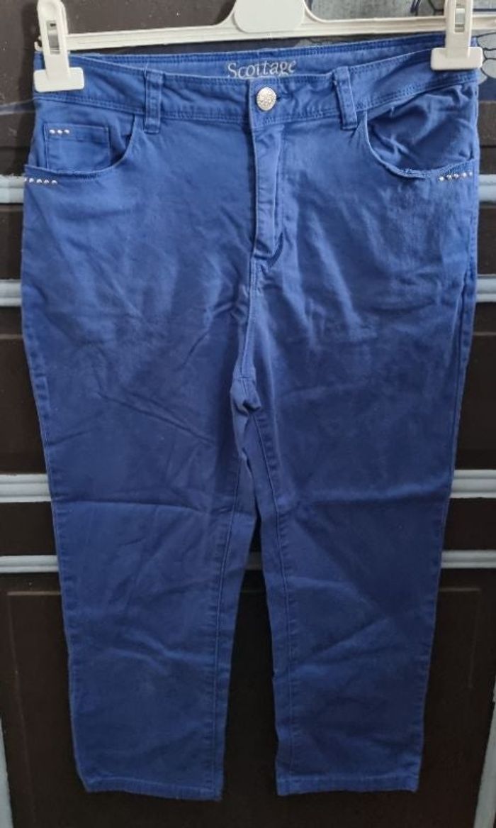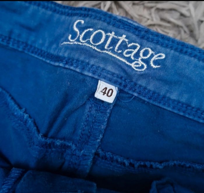 Pantacourt bleu taille 40 marque Scottage,longueur 83cm, largeur de la taille 40cm, largeur cuisse 24cm, largeur cheville 16cm.