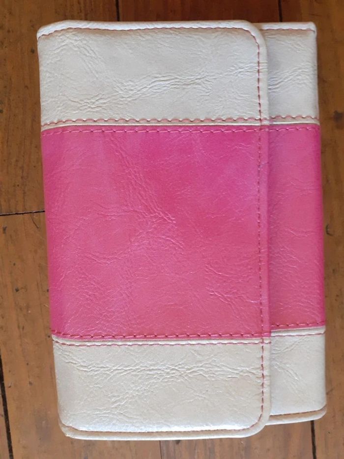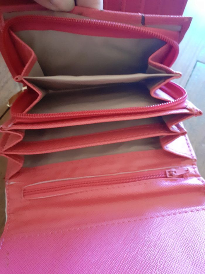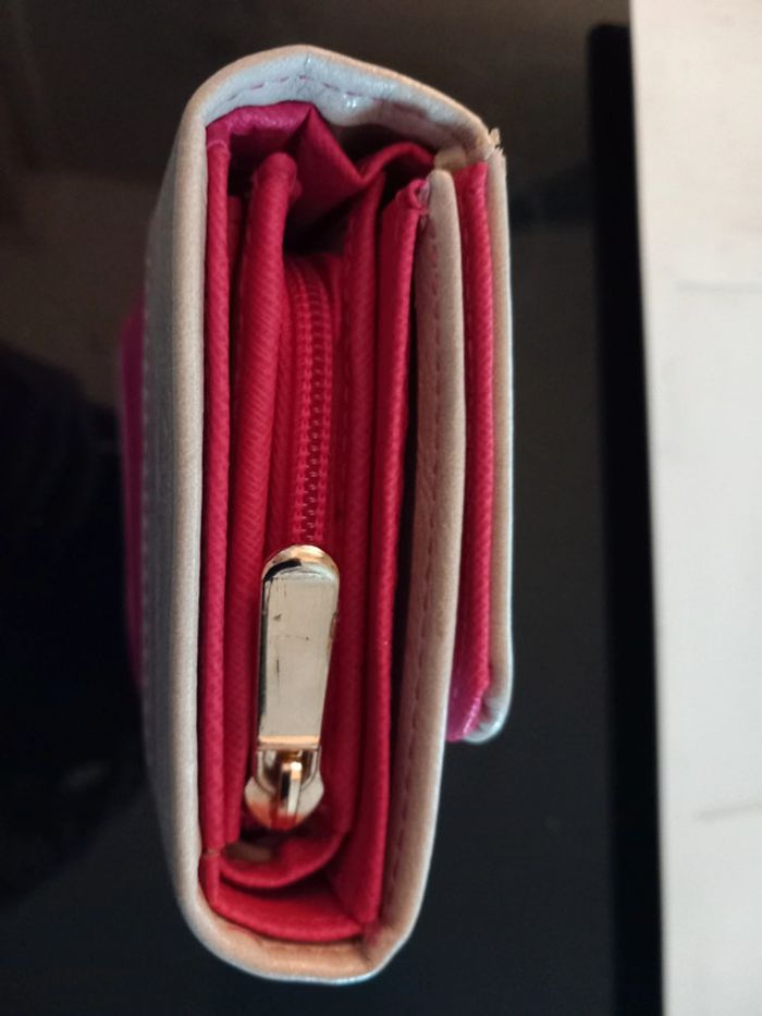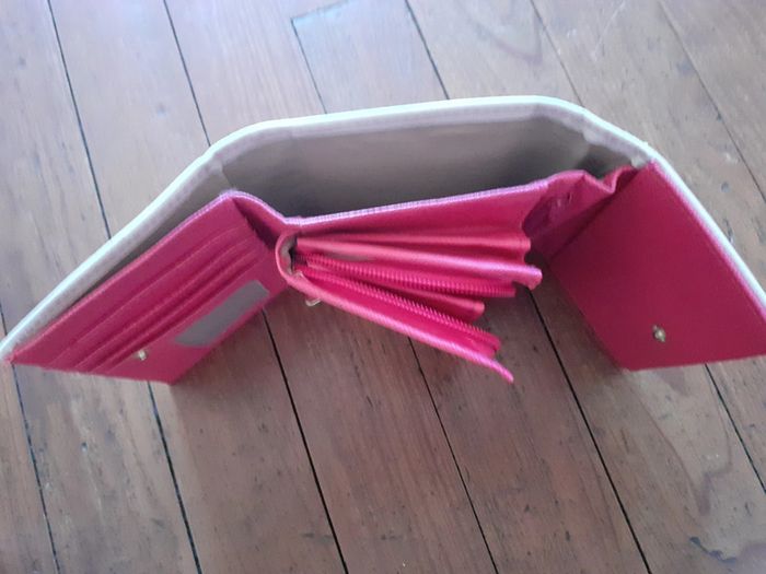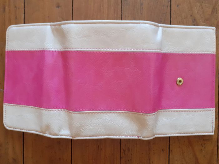 Très joli portefeuille Marque : Rosina Composition : Extérieur : 100% PU Intérieur : 50% Coton, 50% Polyester Coloris : Rose et Ecru Dimensions : H : 11 cms, L: 15 cms, l : 3 cms Etat neuf, jamais utilisé #carlisle66sacamain