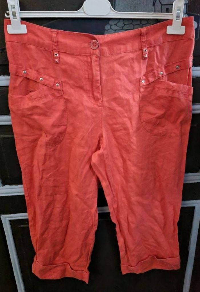 Pantacourt  corail taille 40 💯lin - photo numéro 2