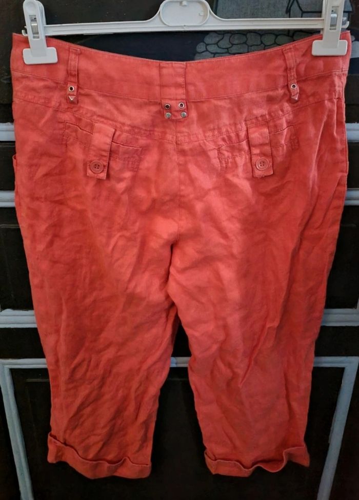 Pantacourt  corail taille 40 💯lin - photo numéro 3