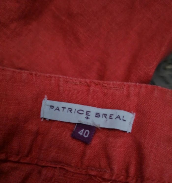 Pantacourt corail taille 40 marque Patrice Breal 100%lin,longueur 75cm, largeur de la taille 44cm, largeur cuisse 29cm.