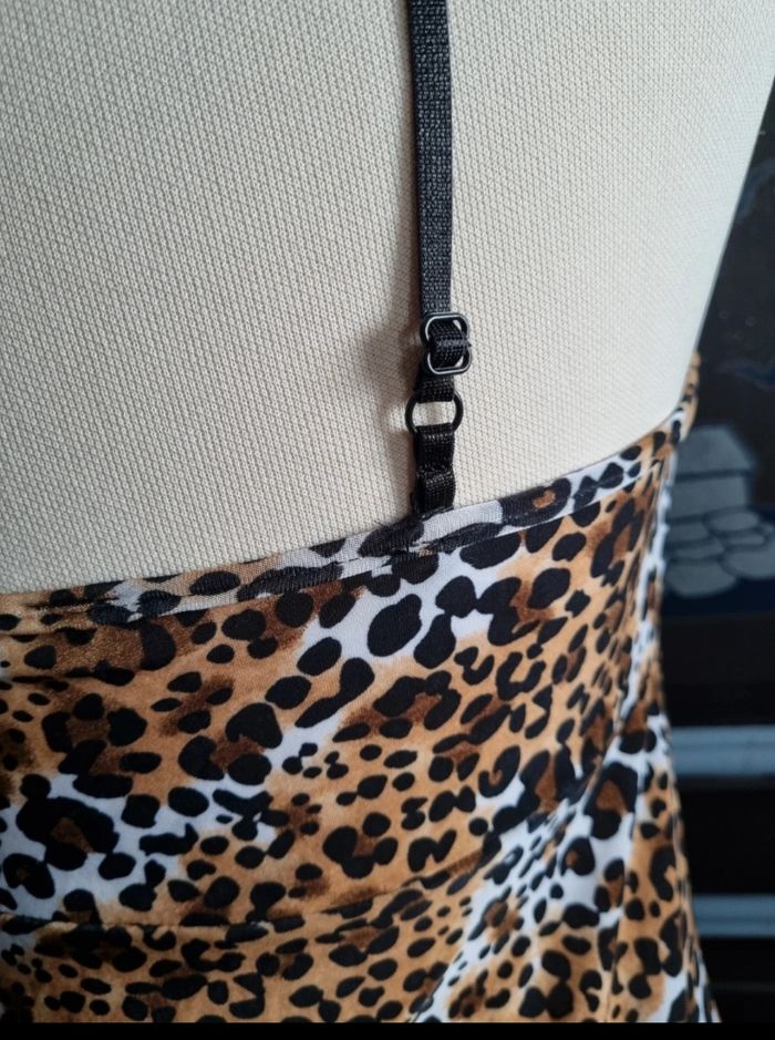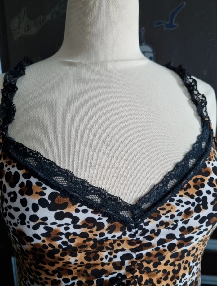 Nuisette à motifs léopard taille 2 ,marque Blue passion,bretelle réglable, longueur 71cm, largeur 43cm, largeur aisselle à aisselle 37cm.